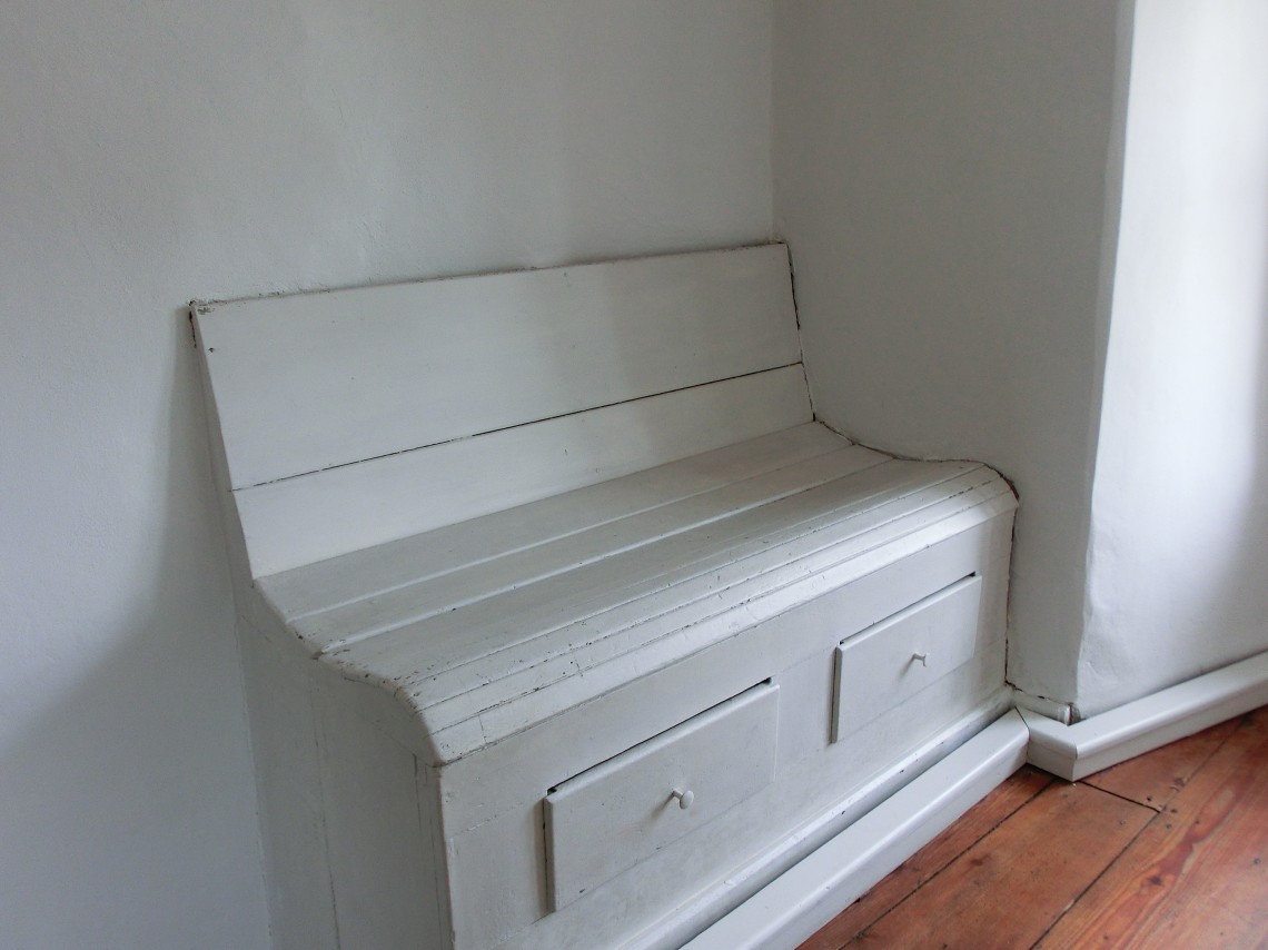 Eine Treppe führt nach oben auf die Frauenempore und in den ersten und zweiten Stock der Wohnung, wo ein Raum als Schulzimmer genutzt wurde, da es in Veitshöchheim keine eigene jüdische Schule gab.